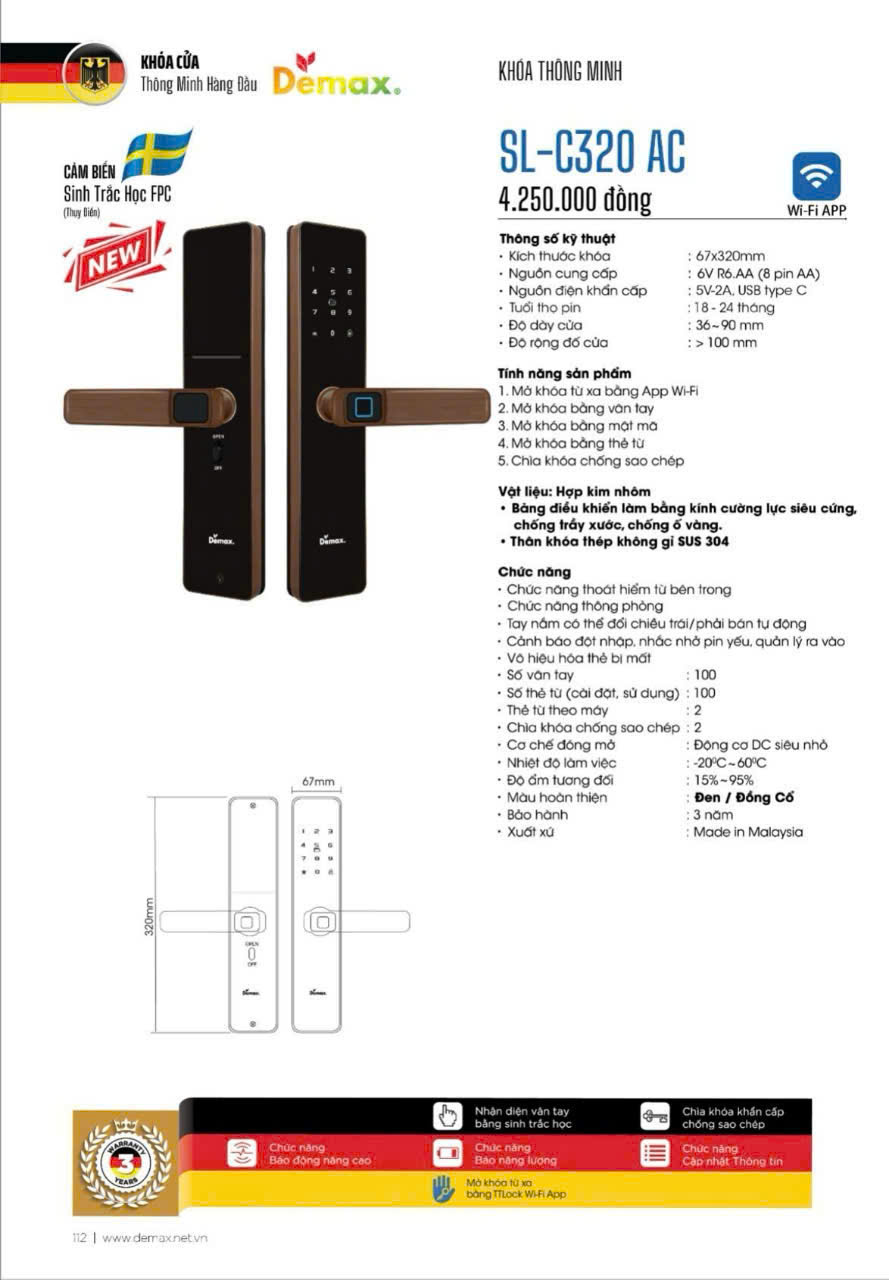 - Kích thước khóa: 67*320mm