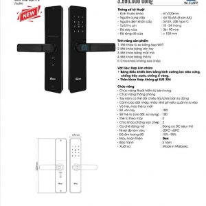 Chất liệu: Hợp kim kẽm cao cấp, thân khóa thép chống gỉ SUS 304 – Nhựa ABS chống cháy